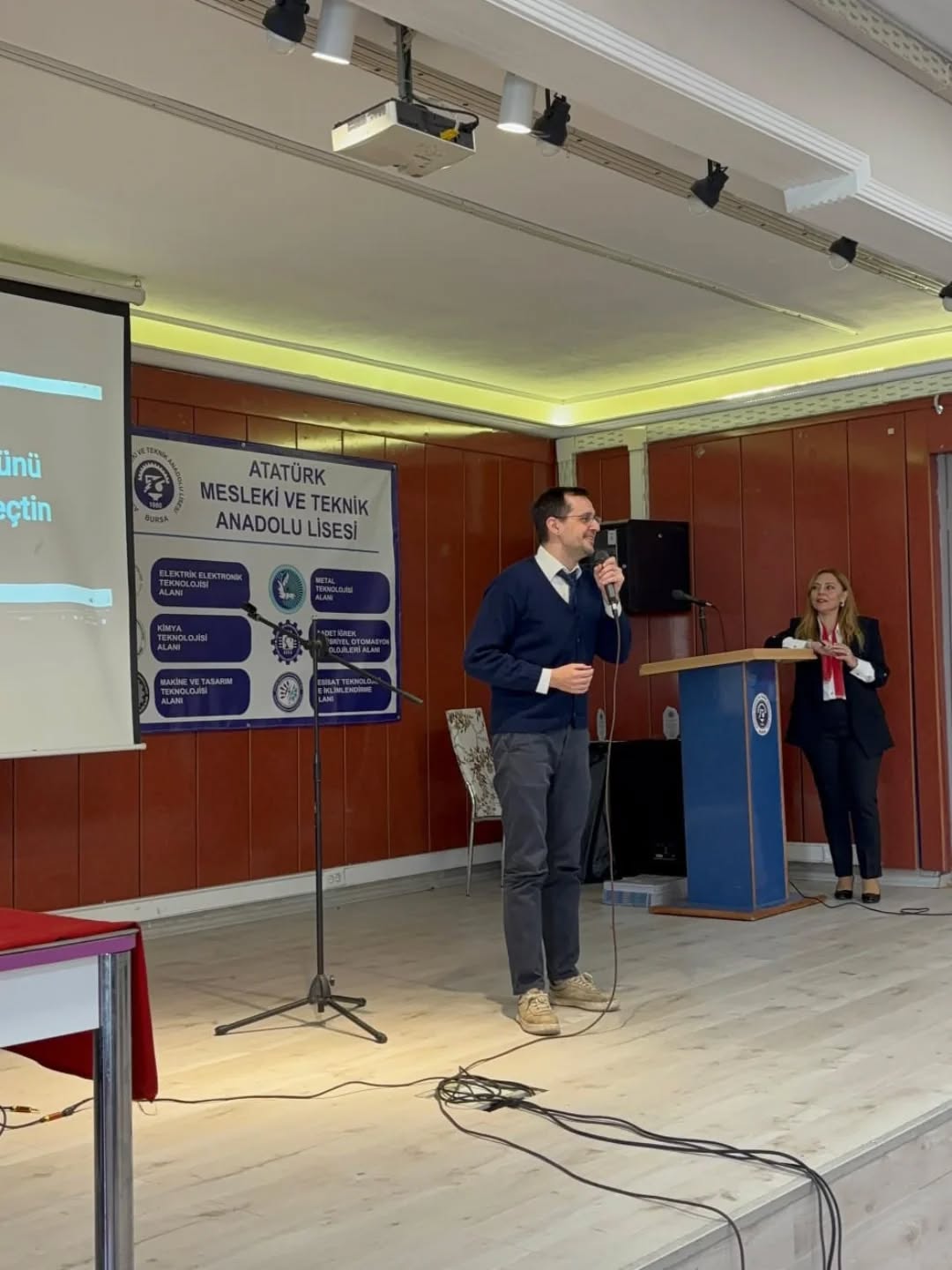 Okulumuz yemekhanesinde düzenlenen programda, görevlerine yeni başlayan öğretmenlerimiz Merve Arslan ve Mehmet Han Yıldız tarafından okunan Öğretmen Andı törene ayrı bir anlam kattı. Katılım gösteren tüm öğretmenlerimize teşekkür ederiz.